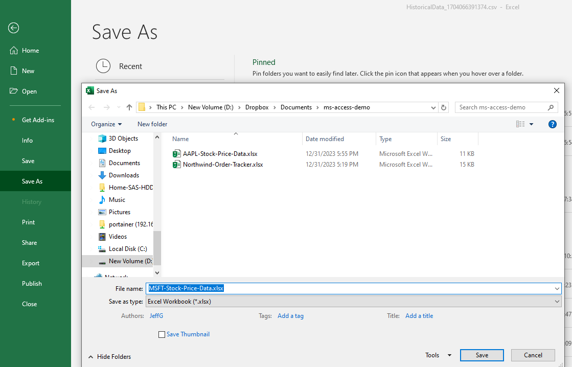 Next I will save the files as .xlsx with a fixed name in a good location.